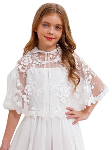 HOT ! Choomomo Hooded Cape with Lace Trim - First Communion Bolero for Girls, Flower Girl Shawls for Wedding