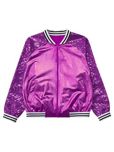 Aislor Kids Girls Sparkle Sequins Bomber Jacket Long Sleeve Hip Hop Jazz Modern Dance Coat Performance Tops Outerwear 6