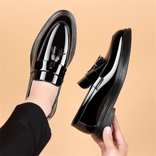 Men's Tassels Patent Leather Penny Loafers Fashion Formal Business Casual Slip On Dress Shoes for Mens 6