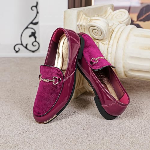 • Upper material--Made of soft velvet material and glossy patent leather with Gold Buckles, these stylish loafers have an eye-catching design and an elegant, classic look.