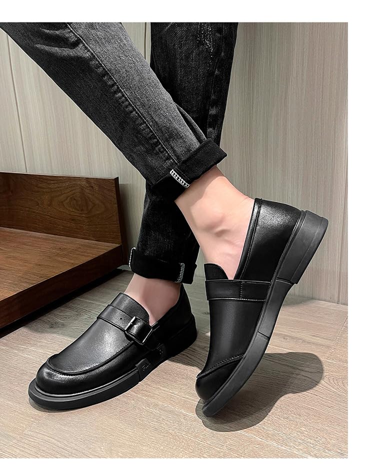 Men's Classic Round Toe Platform Loafers Comfortable Slip-On Business Casual Penny Shoes 7