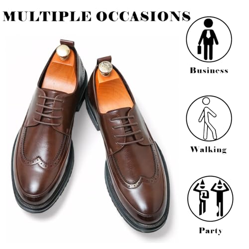 Men's Leather Platform Wingtips Oxfords Retro Brogue Classic Lace-up Lug Sole Dress Shoes for Formal Business Office Derby Shoes 6