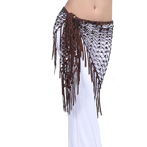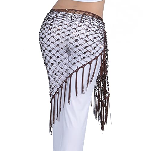 More information about Whitewed Crochet Net Belly Dance Hip Shawl Scarf with Square Sequins & Fringe