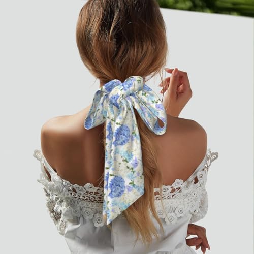 Neck Scarves, Kerchief Neckerchief Headband, Women's Fashion Scarf,Flowers Hydrangea White Navy Blue Gradient 1
