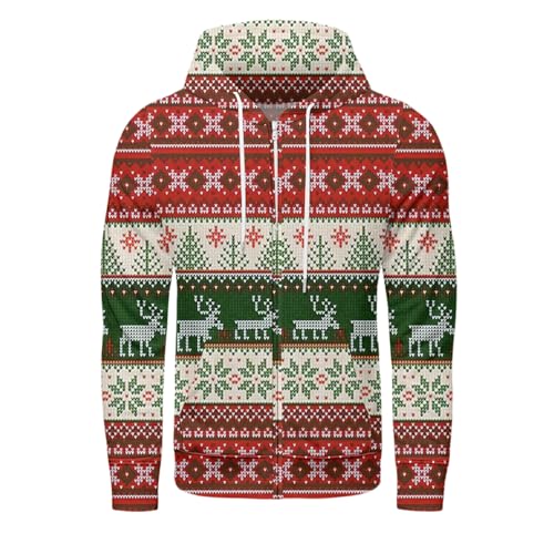Ymosrh Men's Ugly Christmas Hoodies, Long Sleeve Casual Zip Up Hooded Sweatshirt Cute Print Xmas Hoodie Pullover, M-3XL 6
