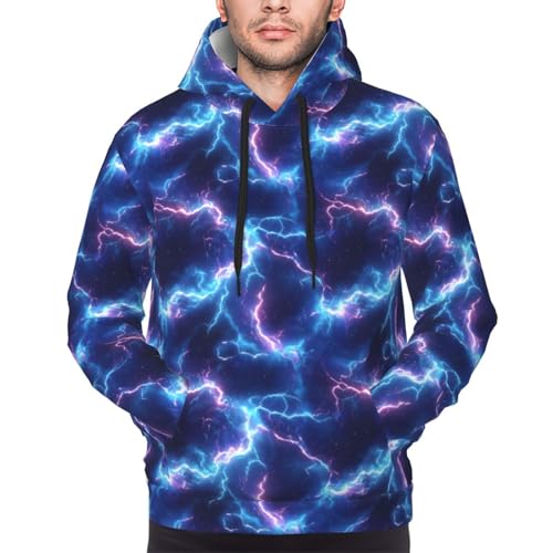 Hoodies For Men - Blue White Lightning Print Long Sleeve Casual Men'S Hoodies & Sweatshirts Pullover With Pocket 5