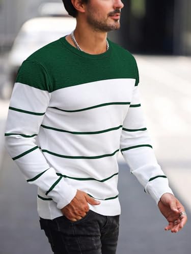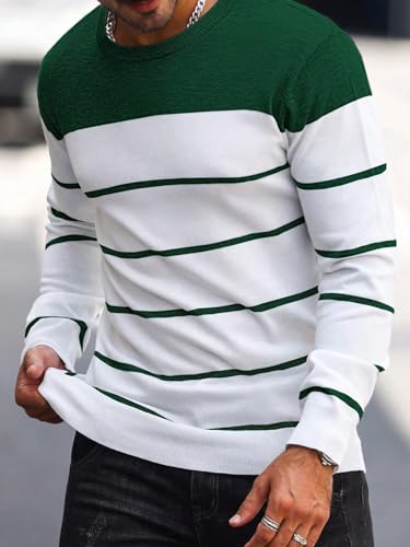 Men's Color Block Striped Sweater Long Sleeve Crewneck Pullovers Casual Slim Fit Fall Knit Tops 6