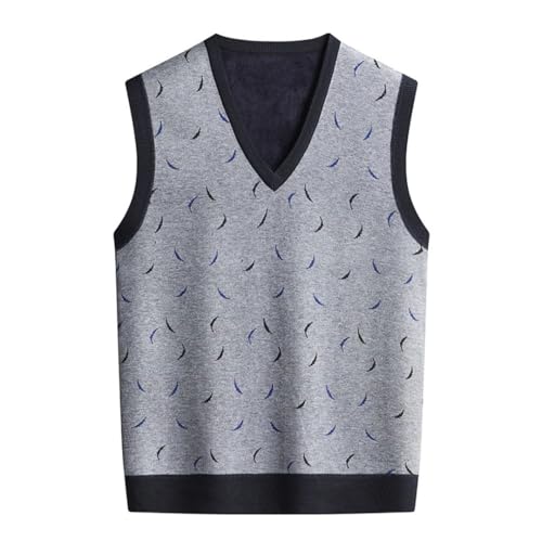 HOT ! Men’S Fashion V-Neck Sweater Vest Plaid Fleece Lined Warm Casual Solid Color Knitted Pullover Waistcoat