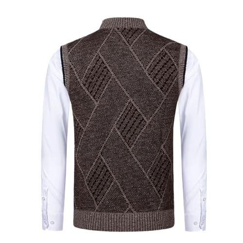Men’S Business Casual Thick Fleece Knitted Vest Slim Fit O-Neck Sleeveless Zippered Cardigan Sweater 7