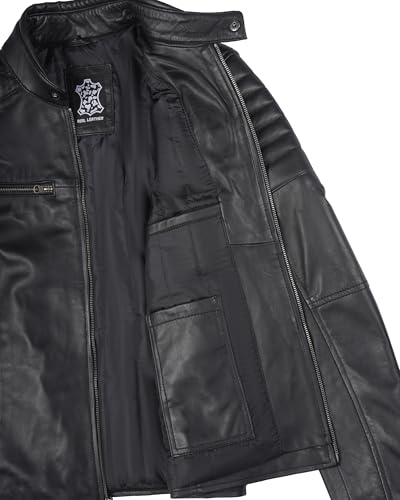 • Leather Craftsmanship: Black leather jacket men made from 100% real lambskin with a soft polyester lining.