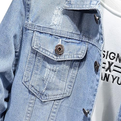 Uillui Mens Classic Blue Denim Jacket, Stylish Western Ripped Distressed Stretch Casual Cowboy Trucker Biker Jeans Jackets 5