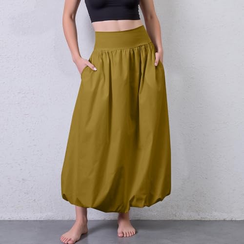 HOT ! Summer Skirts for Women 2025 Y2k Elastic High Waisted Midi Bubble Skirt A Line Pleated Long Flowy Skirt with Pockets