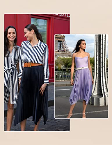 • FOR All SEASONS MATCH: This pressed pleat skirt have a premium matte finish,stays in shape and requires no extra care. The hankerchief bottom moves fluidly, and can be worn in all seasons.