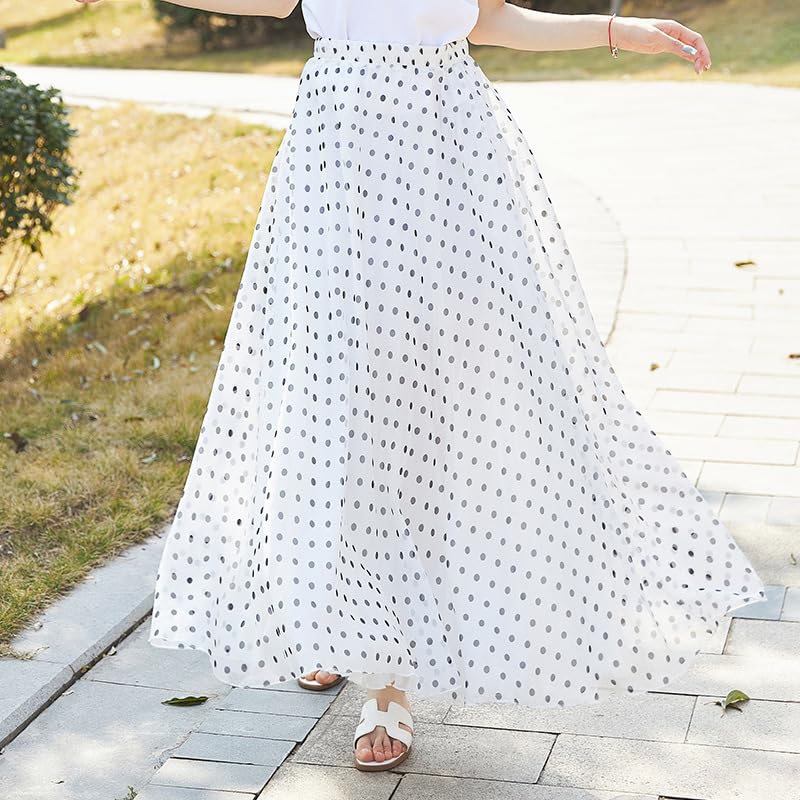 Wuitrie Polka Dot Maxi Skirt for Women 2025 Summer Casual Fashion Bohemian Big Hem Long Skirts 2