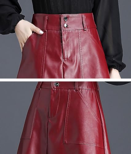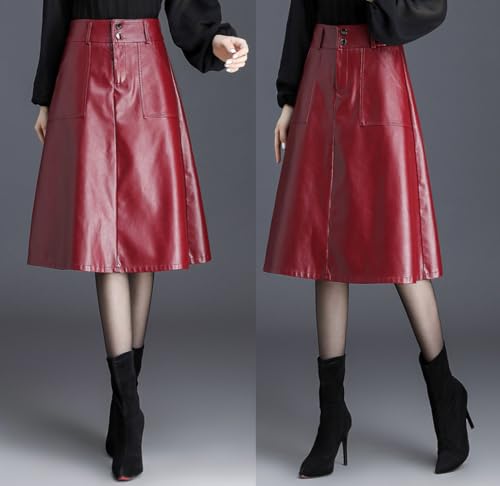 More information about chouyatou Women's Casual High Waist Pu Leather Skirts A-Line Faux Leather Midi Long Skirt with Pockets