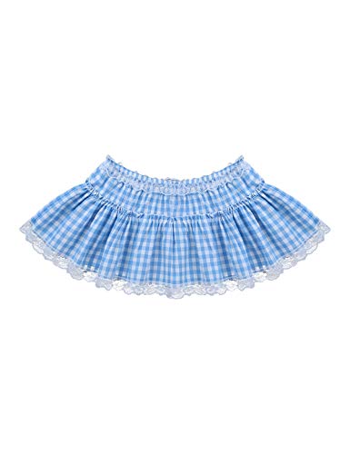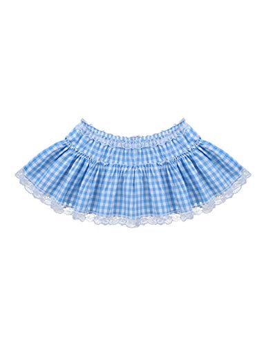 Choomomo Women's Lace Hem Pleated Gingham A-line Mini Skirt Crossdressing Maid Sissy Lingerie 6