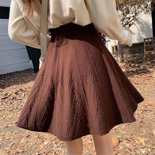 French Style Women's Solid Elastic High Waist Office Lady Slim Knittd A-Line Pleated Skirt 6
