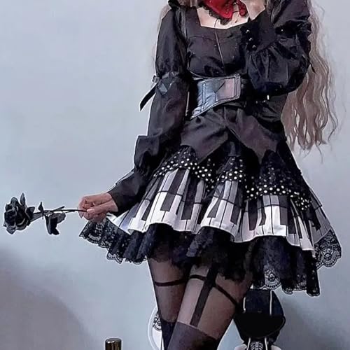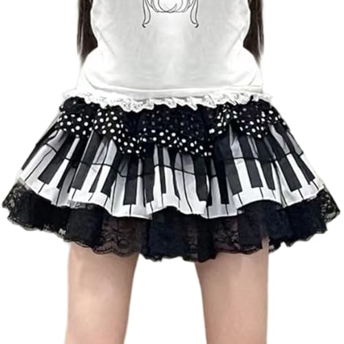 Piano Skirt Trendy Piano Key Pleated Cute Lace Skirts with Elastic Waist for Women Teens Girls, Black and White 6