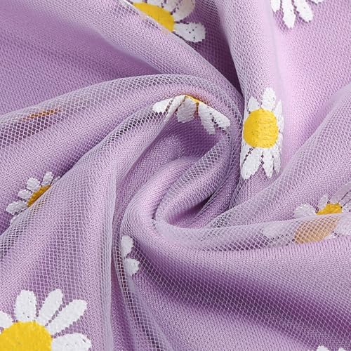 More information about Flowers Embroidery Tulle Midi A-Line Skirt Women's Elastic Waist Flowy Beach Skirts 2025 Trendy Vacation Skirts