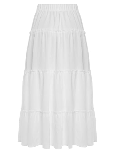 HOT ! YiZYiF Women's Elastic Waist Tiered Ruffled Swing Midi Skirt for Daily Casual Holiday Party Shopping