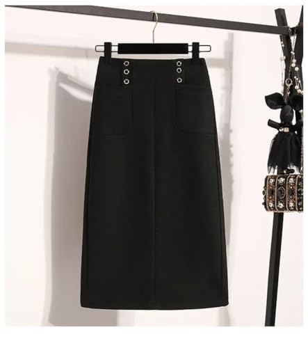 Women's Solid Color Button-Down High Waist Medium Length Straight Slim Fit Plus Size Woolen Skirt 6