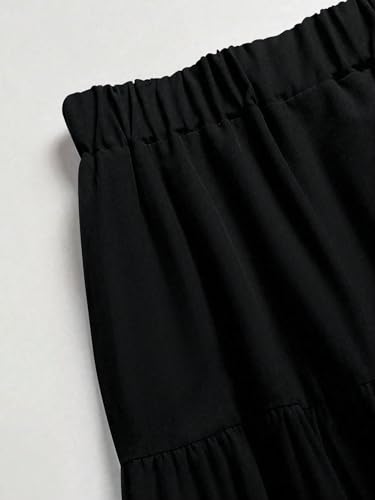 Women's 2025 Summer Casual Long Skirts Solid Color A-Line Skirt 6