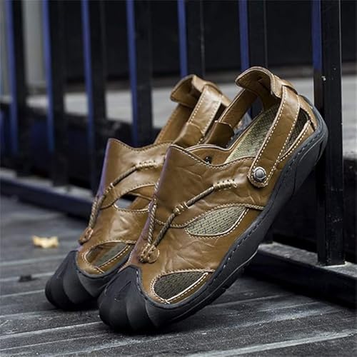 Men's Closed-Toe Leather Sandals - Summer Hiking Non-Slip Outdoor Breathable Adjustable Slides 6