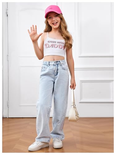 GORGLITTER Girl's Bow Jeans Baggy Jeans Graphic High Waisted Straight Leg Denim Pants with Pockets 8-16Y 2
