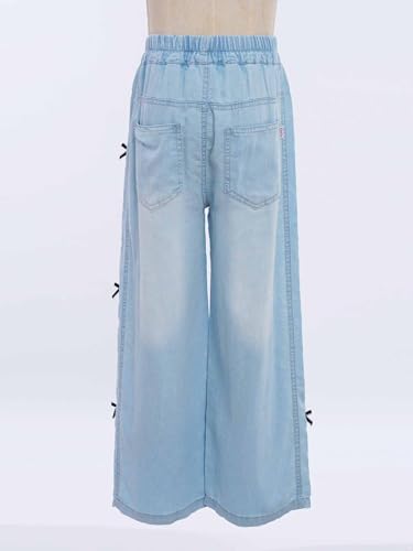 FEESHOW Kids Girls High Waist Washed Blue Straight Jeans Wide-Leg Denim Pants Casual Baggy Trousers with Pockets 7