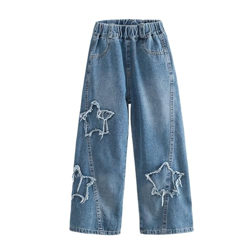 Kids Star Denim Pants Teen Girls Preppy High Waisted Wide Leg Y2K Jeans Youth Soft Loose Fit Vintage Hip Hop Dance Streetwear 6