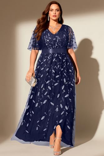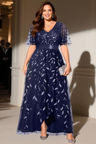 • 【Features】Featuring exquisite sequin embroidery, a double V-neck, and ruffles short sleeves, this fully lined gown offers timeless elegance. Note: No built-in bra and no stretch.