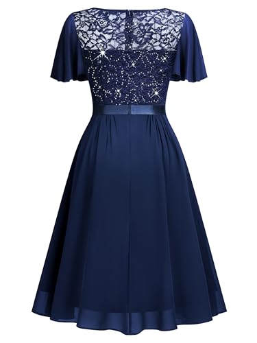 Miusol Women's Sequin Lace V Neck Ruffle Style Cocktail Party Chiffon A-line Dress 4