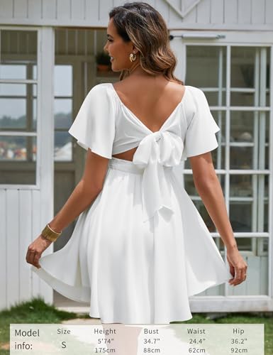 • ELEVATE YOUR SUMMER LOOK: The wrap front, sweetheart neckline, flutter sleeves, adjustable tie-back detail. Every element is designed to showcase your figure, making this dress a must-have for a relaxed and elegant look