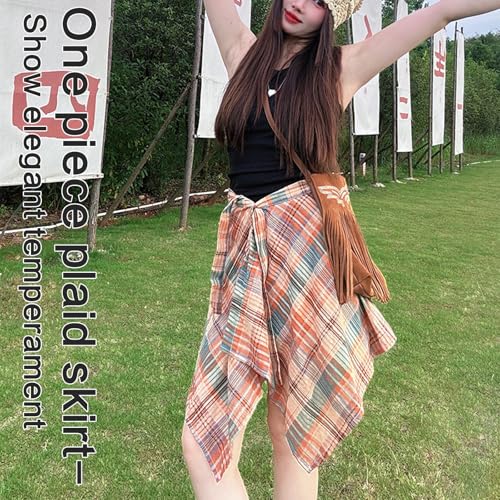 More information about Vintage Checkered Graffitis A Line Short Wrap Skirt for Women Layering Hip Covering Scarf Tie Up Asymmetrical Apron Skir