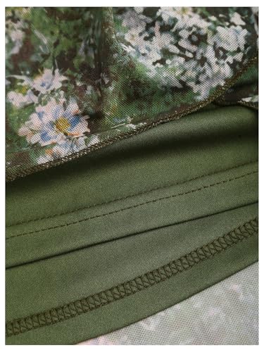 Women's Floral Long Mesh Skirt Vintage Ruffle Elastic High Waisted A Line Boho Flowy Skirts 1