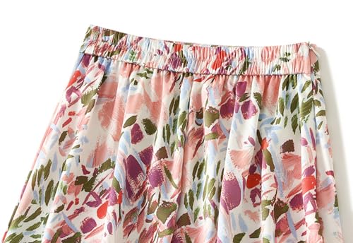 More information about Women's Slim-Fitted Satin Skirts Elegant Floral Print High Waist Flowy A-Line Chiffon Midi Skirt