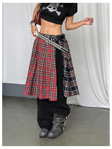 More information about MakeMeChic Women's Plaid Skirt Asymmetrical Low Waist Pleated Split Y2k Midi Skirts