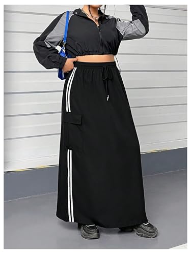 More information about Women's Plus Size Stripe Side Cargo Skirt Drawstring Elastic Waist Maxi Long Skirts