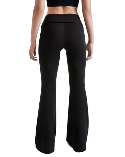 MOOSLOVER Women Flare Leggings Fold Over Bootcut Yoga Pants Casual Y2K Lounge Pants Comfy Cotton Leggings 1