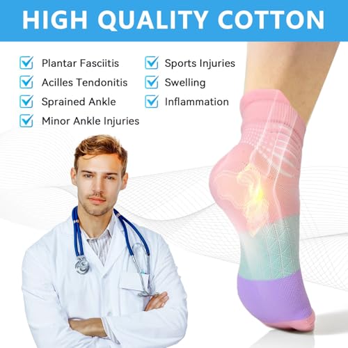 IRAMY Compression Ankle Support Socks Women Coolmax Wicking Cushioned Athletic Plantar Fasciitis Relief 3/4/6 Pairs 6