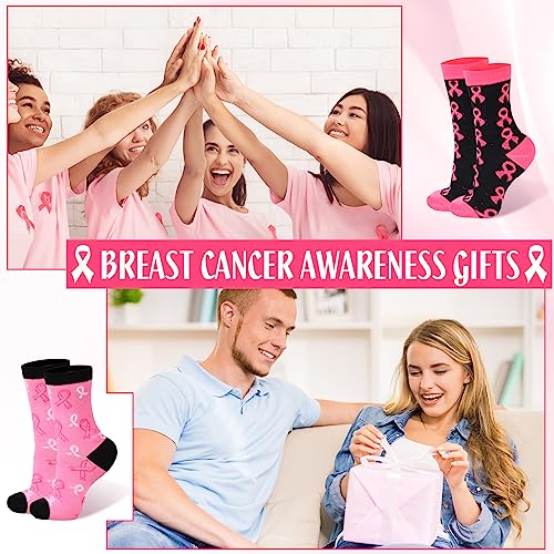 Hercicy Breast Cancer Awareness Socks Bulk Soft Pink Ribbon Breast Cancer Gifts for Women Sport Football Cheer Accessories 2