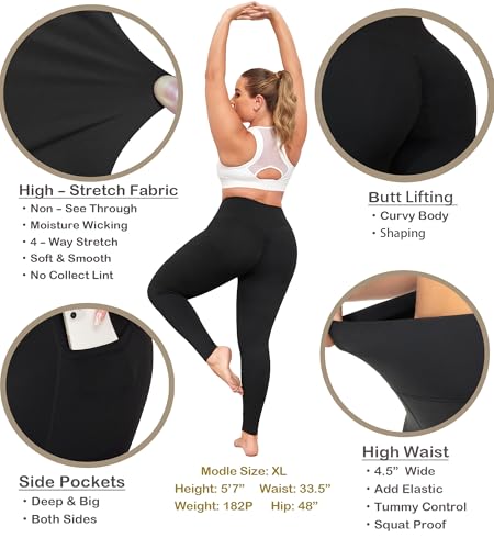 • ✅【Deep Side Pockets】- These plus size leggings with pockets have two Side Pockets. The deep pockets are big enough to hold a smartphone, and when you are doing exercise or jogging, don't worry about your phone falling out from your booty leggings.