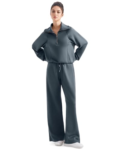 SUUKSESS Women 2 Piece Lounge Matching Set Wide Leg Sweatpant Half Zip Sweatshirt 6