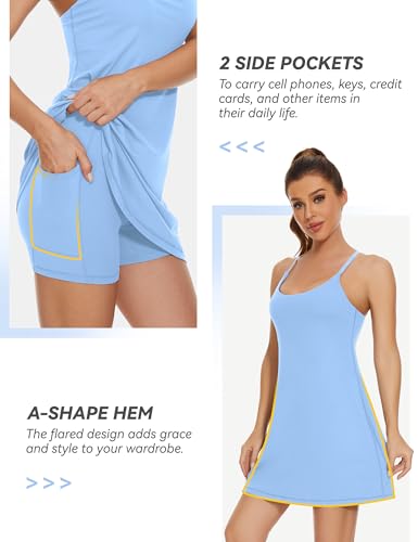 Womens Tennis Dress, 2-in-1 Golf Workout Dress with Built-in Bra & Shorts Pockets, Athletic Dresses with Adjustable Strap 2
