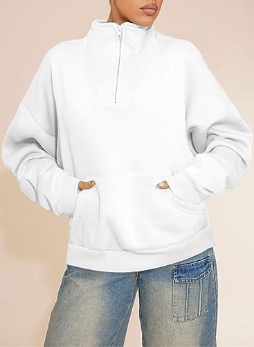 HOT ! BLENCOT Women Half Zip Oversized Sweatshirts Long Sleeve Fleece Trendy Cropped Pullover Workout Warm Tops With Pockets S-2XL
