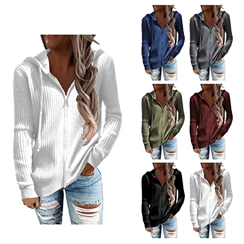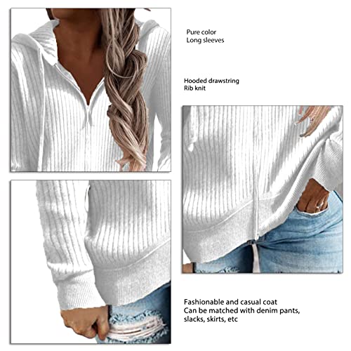 Cocoarm Women's Autumn Winter Rib Knit Long Sleeve Hoodies Zip Up with Drawstring Casual Loose Cardigan Sweater Outwear Coat(XL-White) 1