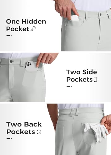 • 5 Pockets: These dress pants come equipped with five functional pockets provide safe storage: Two convenient deep front pockets with one coin pocket and two rear pockets, can put your phones, cards, golf gloves, golf balls and other little items etc.