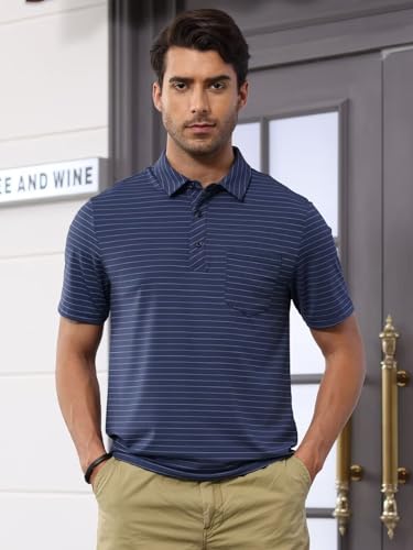 HOT ! Pdbokew Men's Polo Shirts Short Sleeve Striped Golf Polo Shirt with Pocket