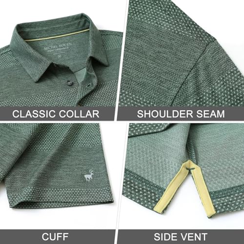 More information about Rouen Golf Shirts for Men Dry Fit Short Sleeve Performance Moisture Wicking Casual Texture Heather Jacquard Mens Polo Shirts