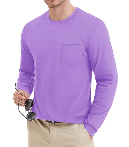 MAGNIVIT Men's Long Sleeve Cotton Shirts with Pocket Crew Neck Casual Shirt Regular Fit Solid Top Spring Fashion 2025 2